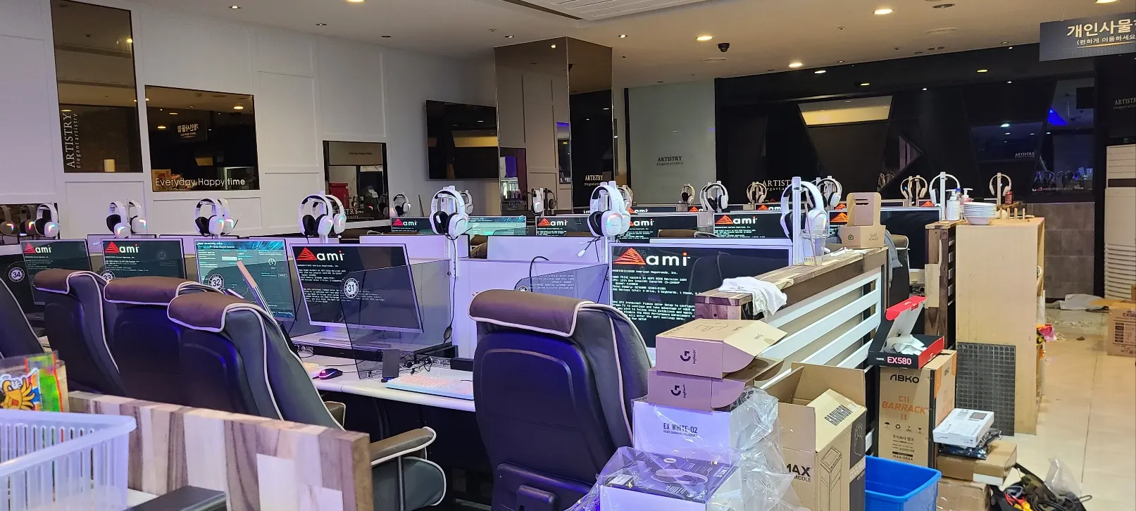 전좌석 100대가 넘는 PC방인데요, 전체 PC를 교체하는 작업을 하고 왔습니다.